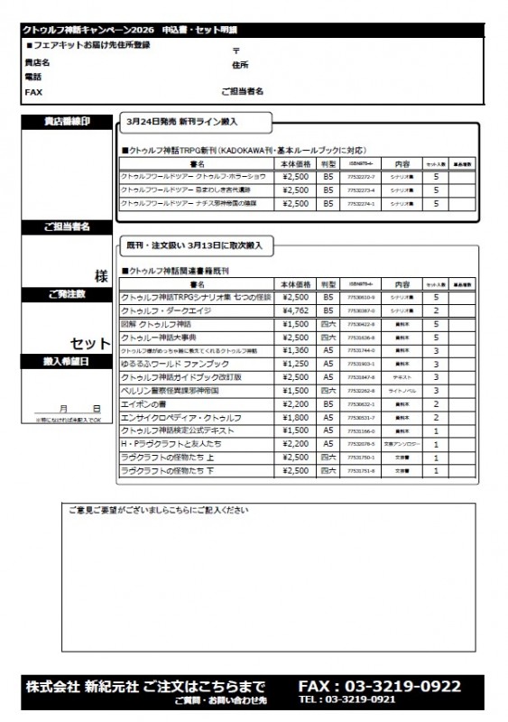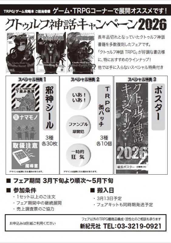 | 02月20日 | クトゥルー神話大事典(価格改定・2刷) | ISBN 978-4-7753-1636-8 |
